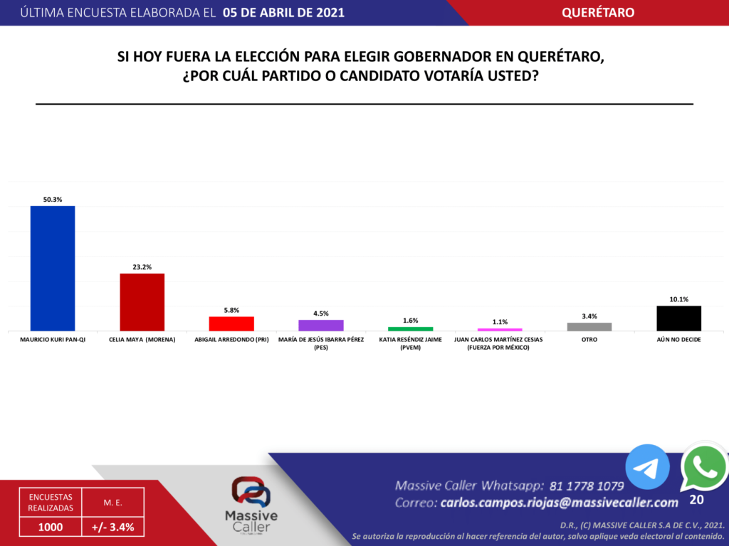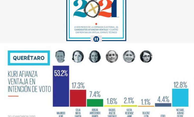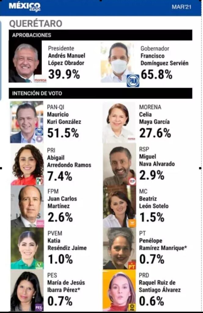 De los últimos sondeos presentados, solo Parametría y Mitofsky, las encuestadoras que más han errado en los últimos años en sus pronósticos electorales, han acercado a Morena al PAN en las preferencias electorales de Querétaro, pues la mayoría de los instrumentos aplicados dan una ventaja muy amplia en el arranque de los comicios a favor de Mauricio Kuri González.