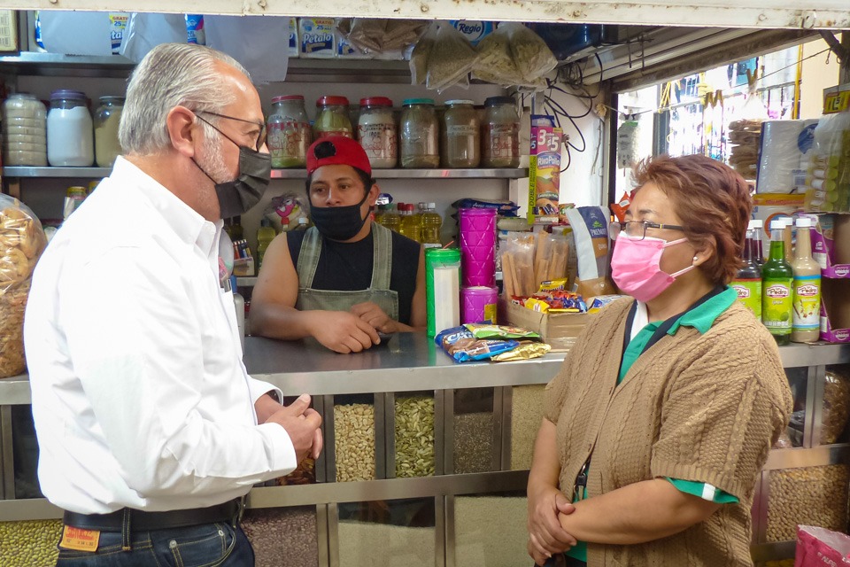 Santiago de Querétaro, Qro., 15 abril 2021.- El Candidato a Diputado Federal por el Tercer Distrito del Partido Acción Nacional (PAN), Ignacio Loyola Vera, durante su recorrido por el Tianguis y Mercado Satélite; donde en diálogo con los comerciantes le expresaron la necesidad de “castigos ejemplares para los delincuentes y no la puerta giratoria existente, donde más tardan en entrar que en salir; el pueblo se entregó a la delincuencia”, se quejaron.