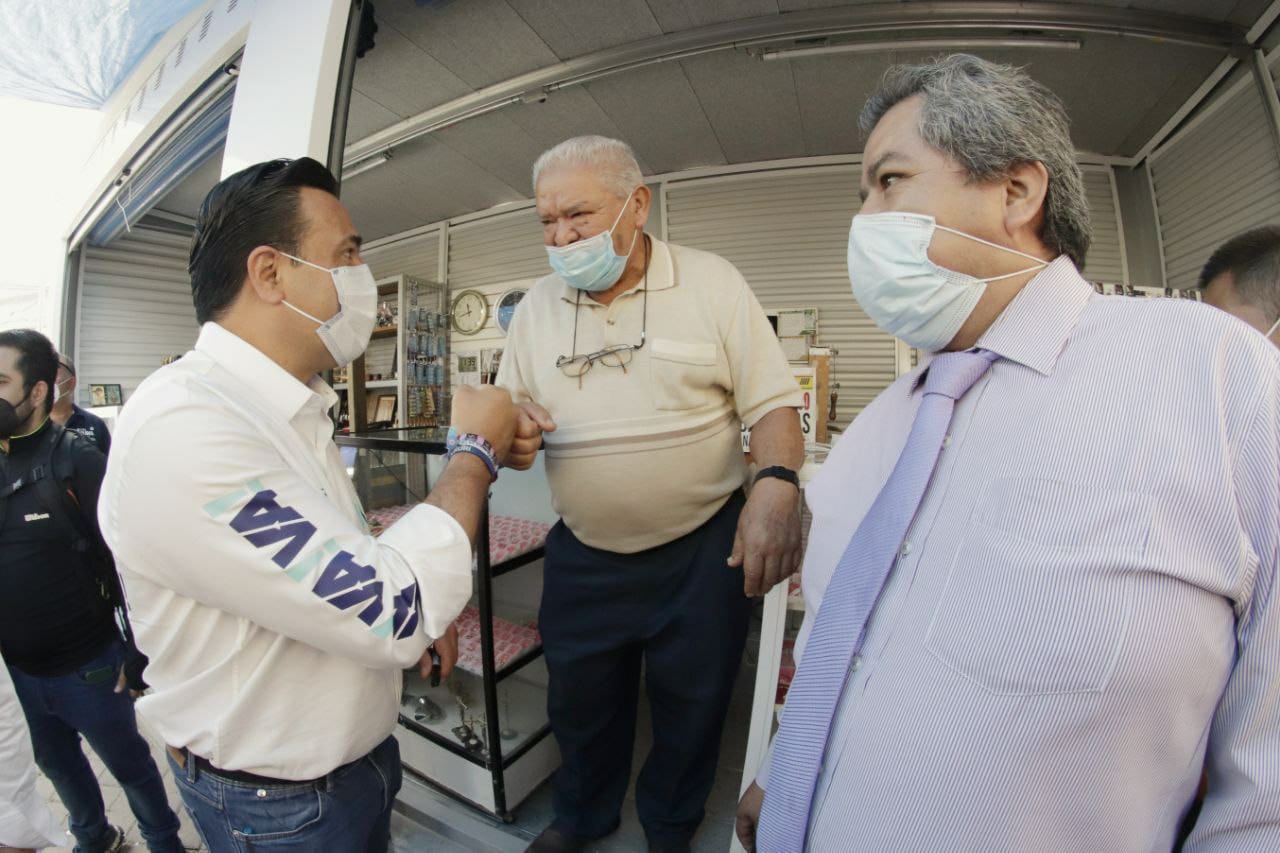 Querétaro, Qro, viernes 23 de abril de 2021.- Con el objetivo de enriquecer sus propuestas y de la continua atención a las necesidades de los queretanos, el candidato a la Presidencia Municipal de Querétaro por el Partido Acción Nacional (PAN) y Querétaro Independiente (QI), Luis Nava, visitó el Mercado Municipal de Lomas de Casa Blanca, lugar en el que difundió entre los comerciantes sus proyectos de agenda económica.