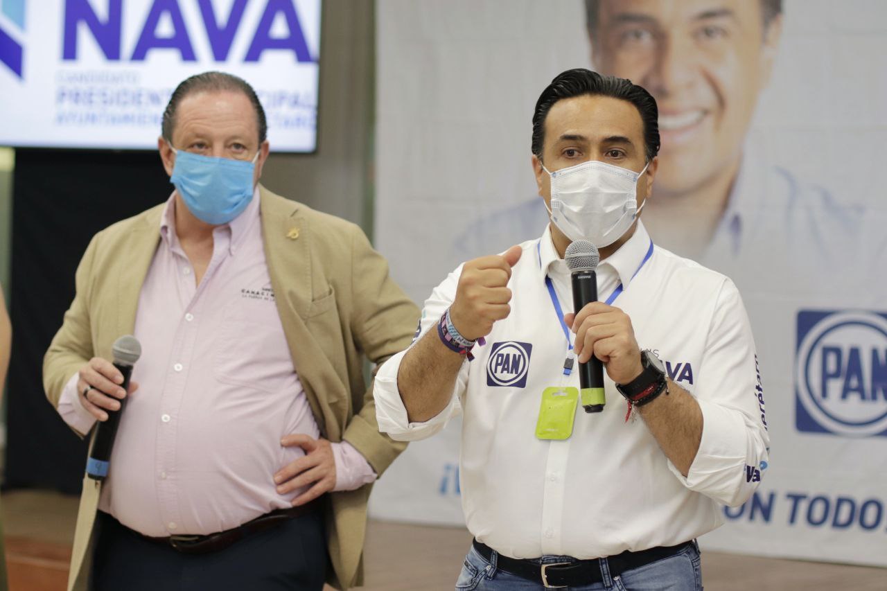 Querétaro, Qro., jueves 06 de mayo de 2021. – Con la presencia del presidente de la Cámara Nacional de la Industria de la Transformación (Canacintra) en Querétaro, Jorge Rivadeneyra, Luis Nava destacó que los industriales son ese elemento fundamental para la reactivación económica, por lo cual, de verse favorecido con la confianza de los ciudadanos el próximo 6 de junio, los convocará a una gran alianza para seguir haciendo de nuestra ciudad la capital del empleo.