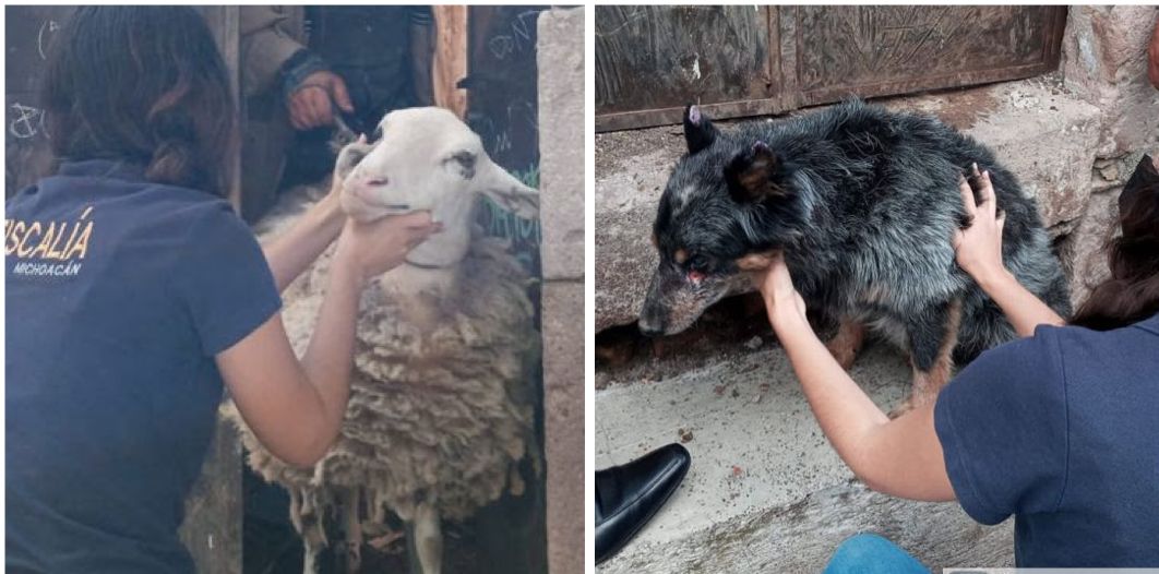 Elementos de la Fiscalía General del Estado de Michoacán (FGE) rescataron a una oveja y perrito, quienes habrían sufrido maltrato animal en Morelia.