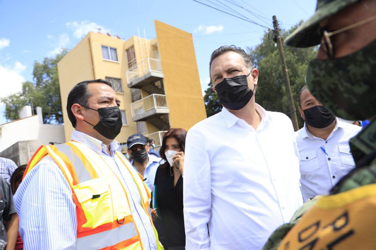 El mandatario, acompañado por el presidente municipal, Roberto Cabrera Valencia y parte del gabinete estatal, realizó un recorrido por los lugares donde se registraron más daños y en la interacción con los vecinos anunció medidas inmediatas y la búsqueda de soluciones a mediano plazo.