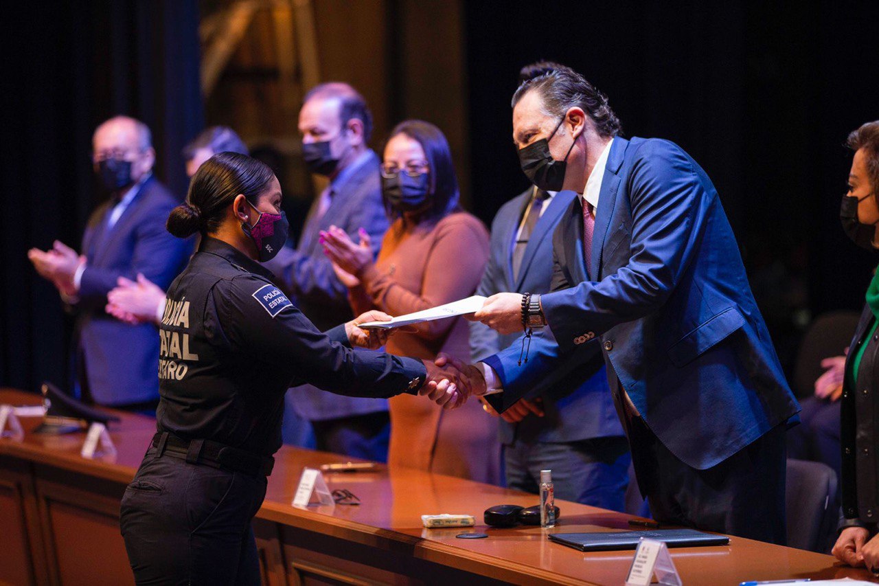 Querétaro es referente en todo el país, porque aquí la seguridad la construimos todas y todos, afirmó el gobernador, Mauricio Kuri González, durante la entrega de reconocimientos a oficiales de la Secretaría de Seguridad Ciudadana, en el marco del Día del Policía.
