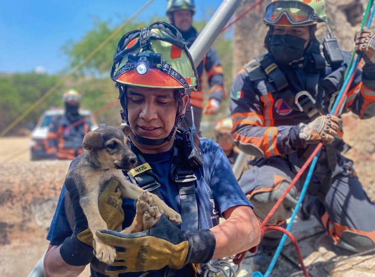 Las labores de rescate de los elementos de atención de emergencias duraron alrededor de una hora y media, quienes a través del uso de las herramientas y el equipamiento necesario, para no ponerse en peligro y llevar a cabo un rescate exitoso, lograron descender a través del estrecho lugar y rescatar a la perrita con vida.