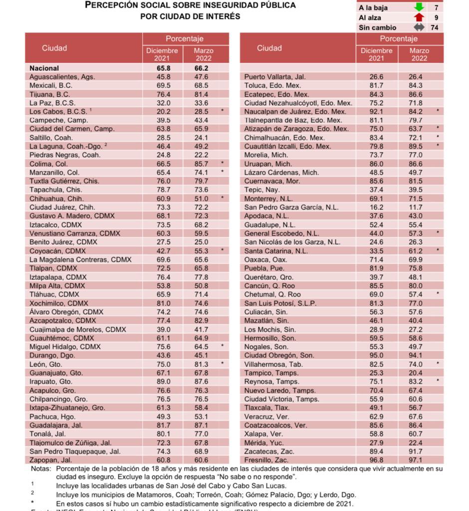 La más reciente medición presentada por INEGI en enero pasado y que midió el último trimestre del 2021, mostraba datos alentadores con un 40.5 por ciento de la población del municipio que consideraba inseguro vivir en Querétaro, contra 59.5 que se sentía seguro en nuestra ciudad.