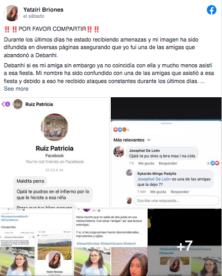 “Debanhi si es mi amiga; sin embargo, ya no coincidía con ella y mucho menos asistí a esa fiesta. Mi nombre ha sido confundido con una de las amigas que asistió a esa fiesta y debido a eso he recibido ataques constantes durante los últimos días”, relató.