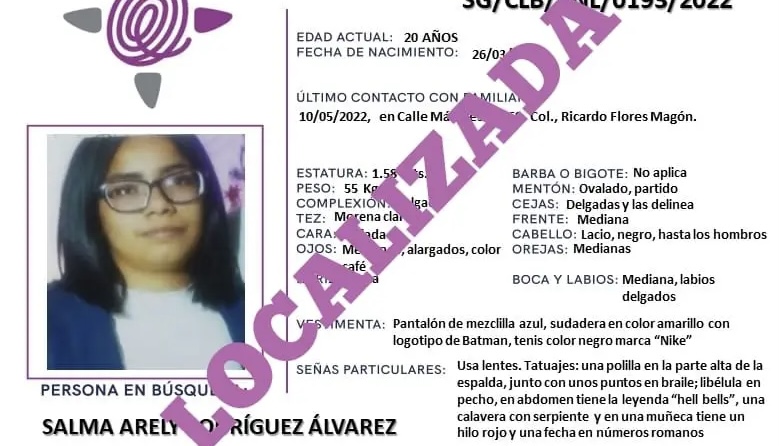 A través de la página de la Comisión Local de Búsqueda de Personas se informó de su localización, apenas momentos después de que la Fiscalía informó del hallazgo del cuerpo de una mujer sin vida en las inmediaciones del Parque Querétaro 2000.