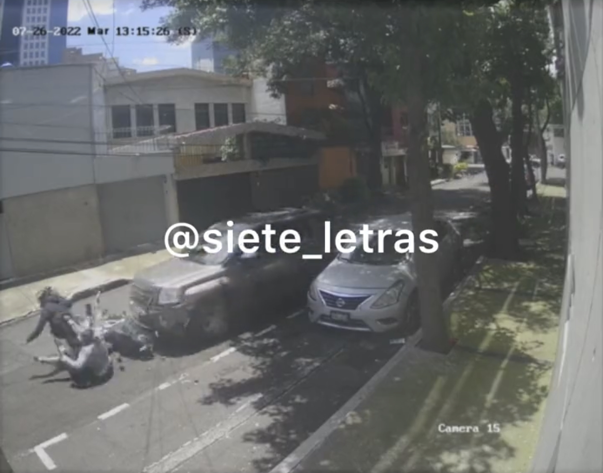 El video de las cámaras de seguridad que captaron el momento lo divulgó el periodista Antonio Nieto a través de su cuenta de twitter en donde se ve el momento exacto en que el ofendido embiste a los ladrones que viajaban en una motocicleta.