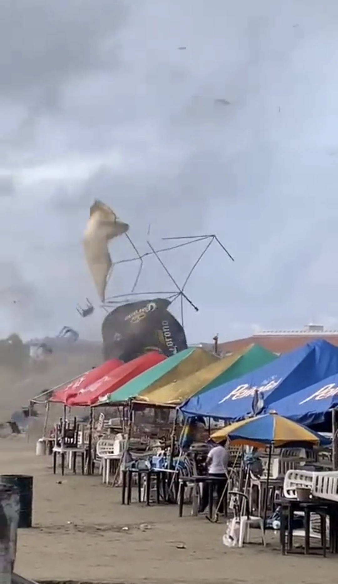 El tornado se llevó todo lo que encontró a su paso en la playa Villa del Mar, en los videos se ven volando sillas, sombrillas, mesas y carpas.
