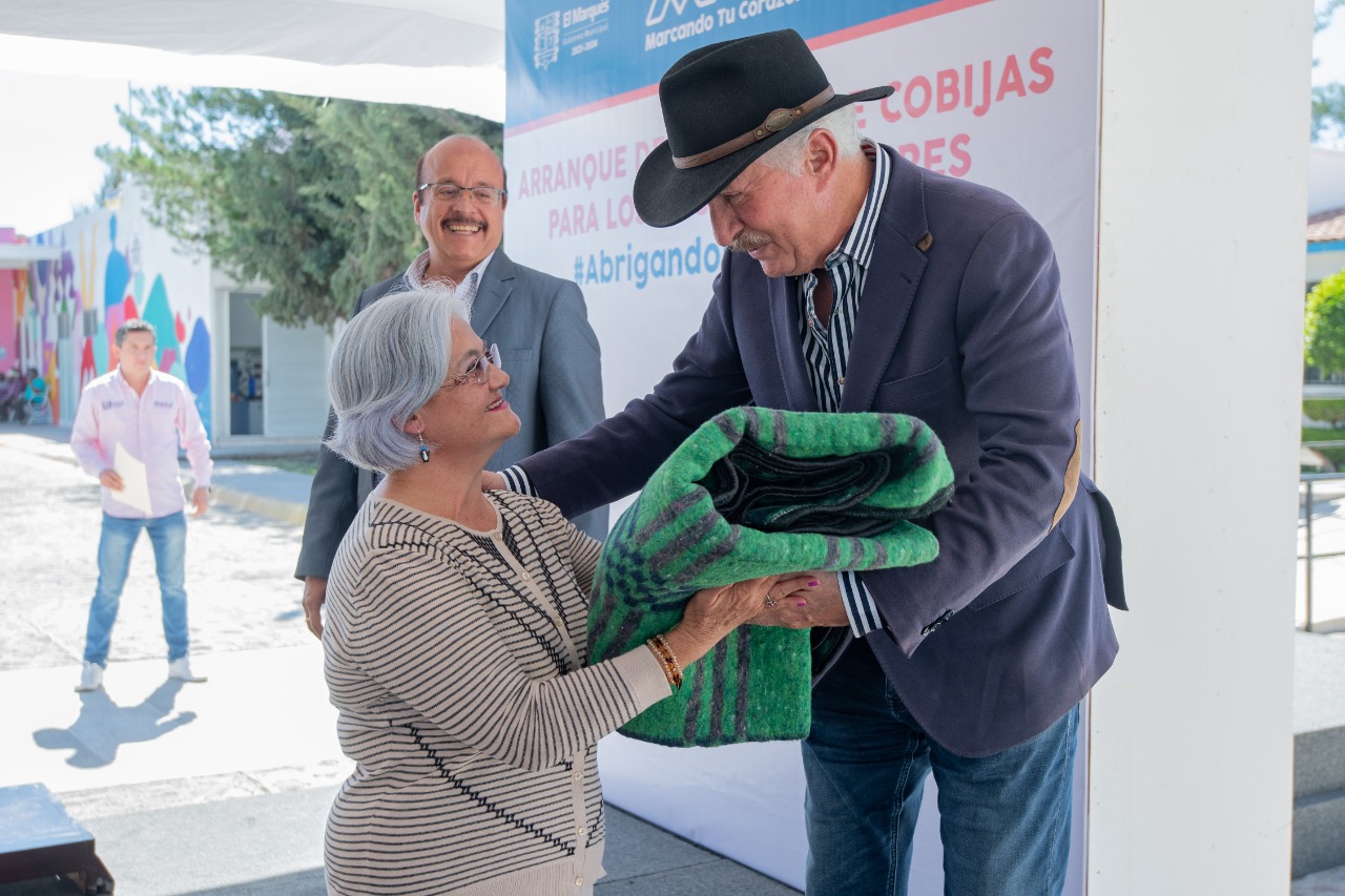 El presidente municipal de El Marqués, Enrique Vega Carriles, dio el banderazo de salida a la entrega de cobijas del Sistema Municipal DIF, beneficiando a 5 mil adultos mayores de diversas comunidades y fraccionamientos, como parte del programa “Abrigando de Corazón”.