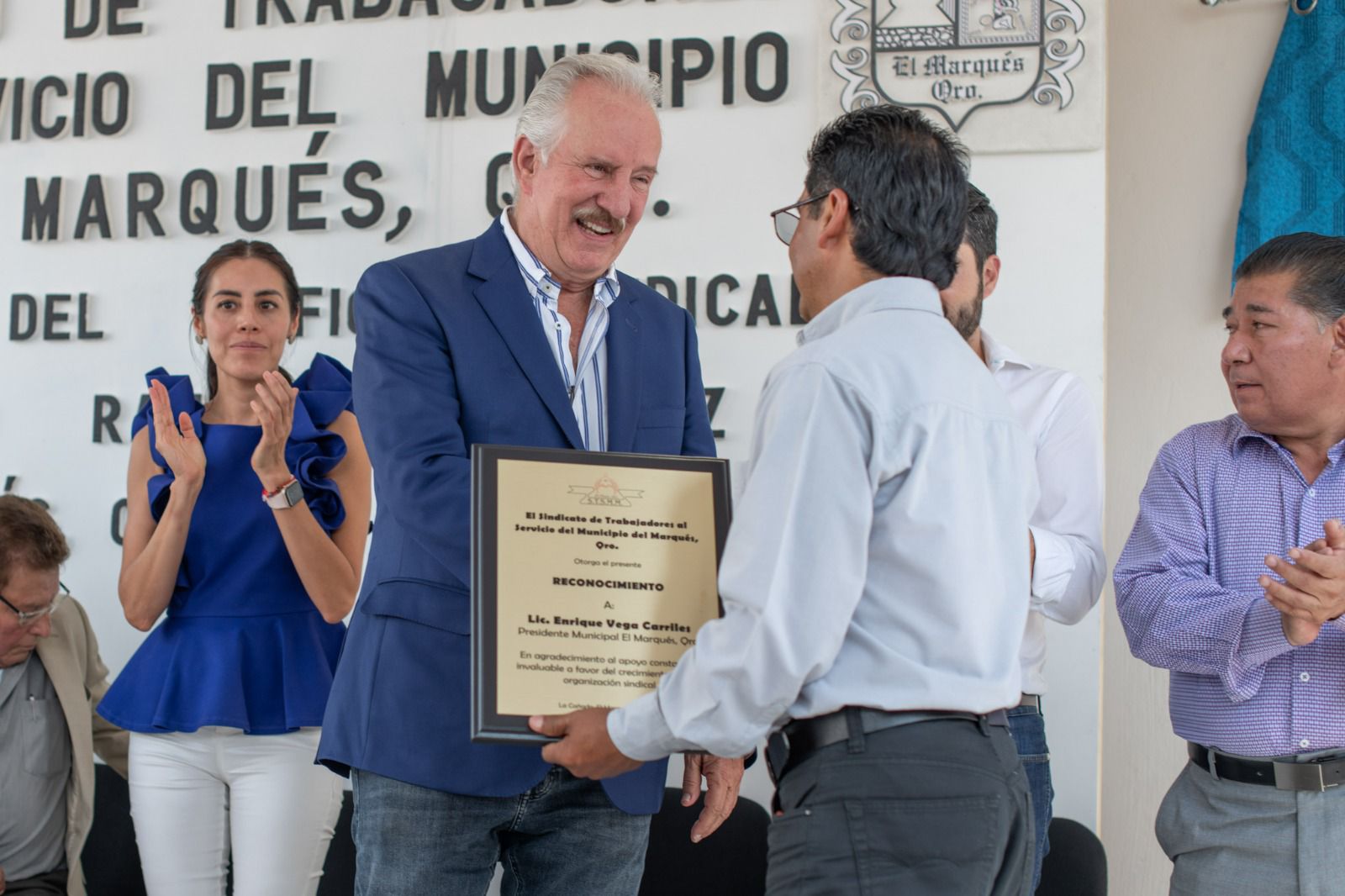 Las autoridades estatales y municipales entregaron reconocimientos a personal del Sindicato de Trabajadores al Servicio del Municipio de El Marqués.