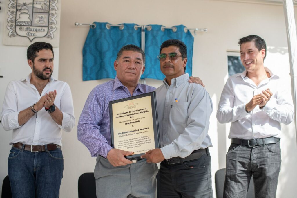 “Sumándome al reconocimiento a la trayectoria sindical de Ramiro Ramírez Ramírez, actual regidor Síndico Municipal, y reiterándole nuestra voluntad de colaboración permanente a Liliana San Martín Castillo, secretaria del Trabajo en el Estado, las y los invito a que nos mantengamos en la ruta del diálogo y de los acuerdos para convertir al empleo en patrimonio de las familias marquesinas”.
