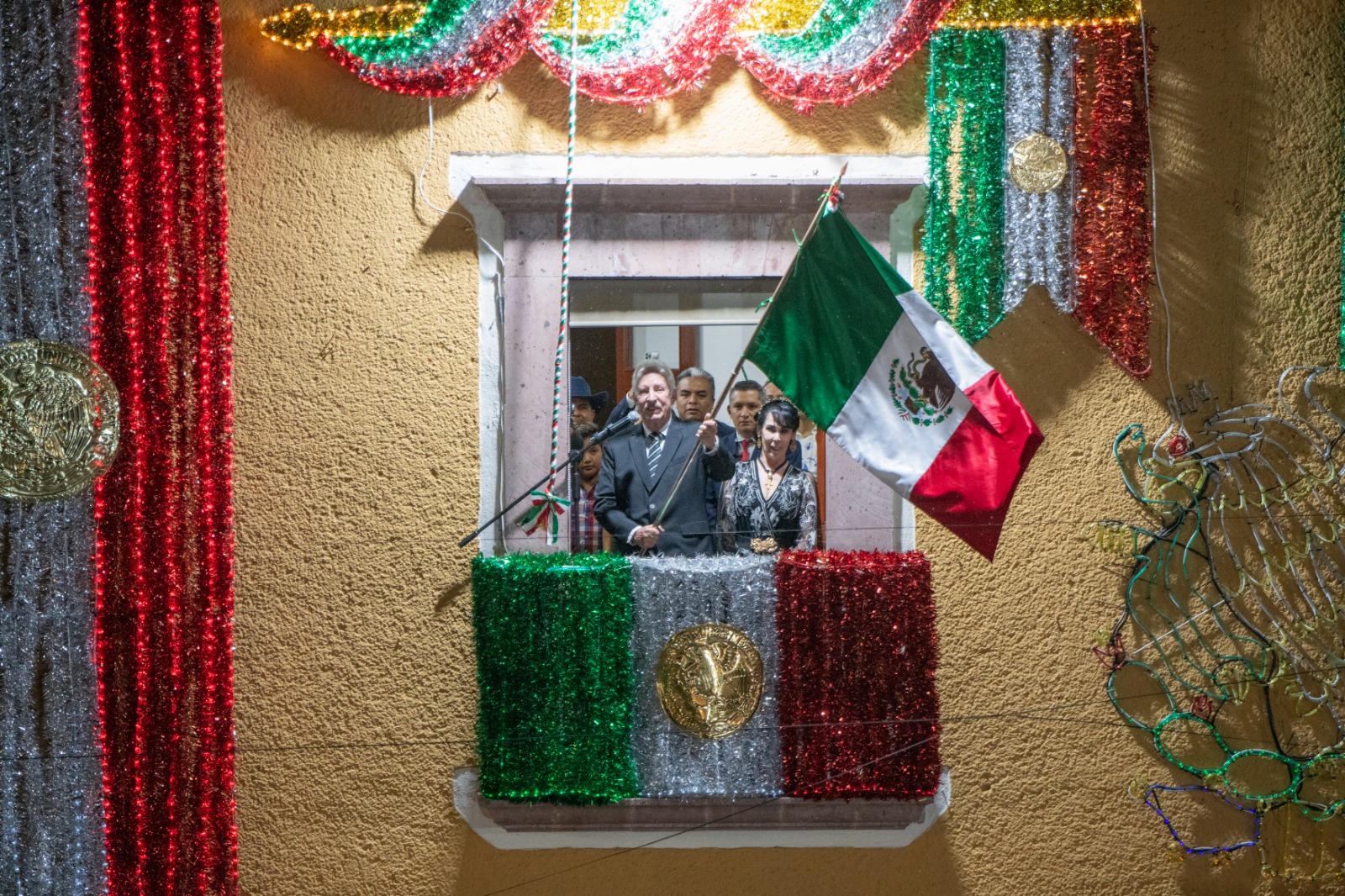 Durante el tradicional discurso insurgente, el edil marquesino, acompañado de su esposa, Rocío Maestre, así como de autoridades municipales se dieron cita en el balcón de la antigua presidencia donde vitoreó: «mexicanas y mexicanos ¡Que viva la independencia nacional, que vivan los héroes que nos dieron patria y libertad!”.