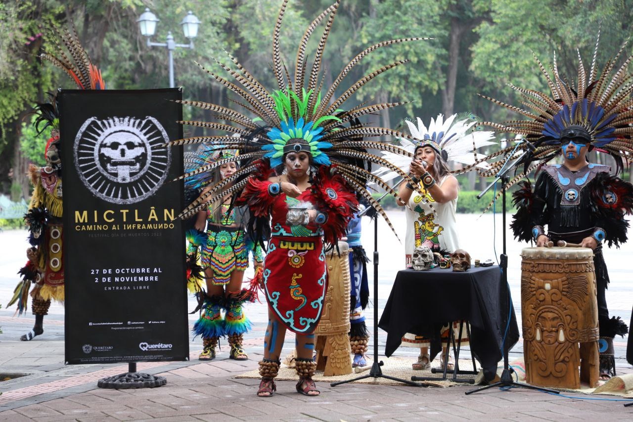 El Municipio de Querétaro presentó las actividades culturales y turísticas que se realizarán en la ciudad con motivo del Día de Muertos 2023, y entre los que destaca la exposición “Mictlán, camino al inframundo. Festival de Día de Muertos 2023”, que se realizará del 27 de octubre al 2 de noviembre en la Alameda Hidalgo.
