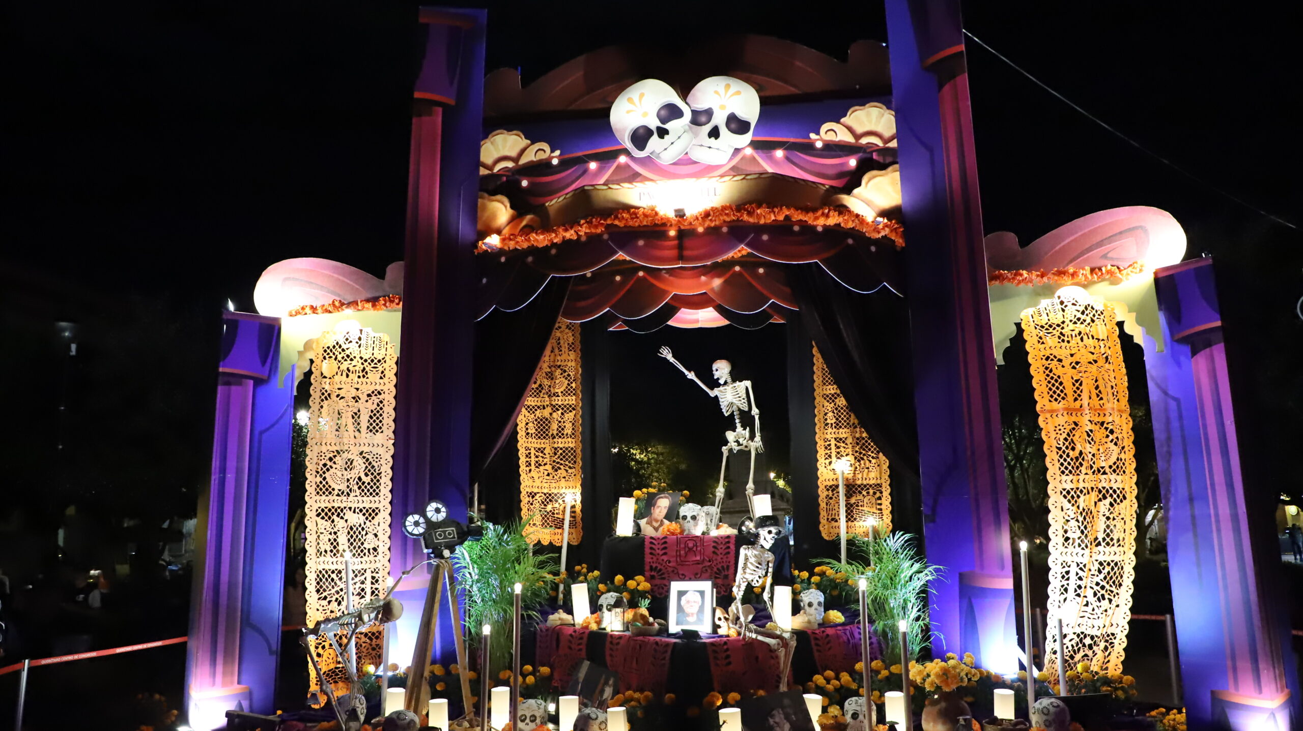 La secretaria de Turismo estatal, Adriana Vega Vázquez Mellado, en compañía de la directora del Patronato de las Fiestas de Querétaro, Gloria García Alcocer, y del vicario de la Diócesis de Querétaro, Martín Lara Becerril, inauguró el Altar de Muertos Monumental de Plaza de Armas, que en esta ocasión está dedicado en memoria del actor queretano Don Paco Rabell, fundador del Teatro Corral de Comedias; esto en el marco del Festival de Día de Muertos que organiza la Secretaría de Turismo estatal (SECTUR) y que se realiza desde el 28 de octubre y hasta el 5 de noviembre.