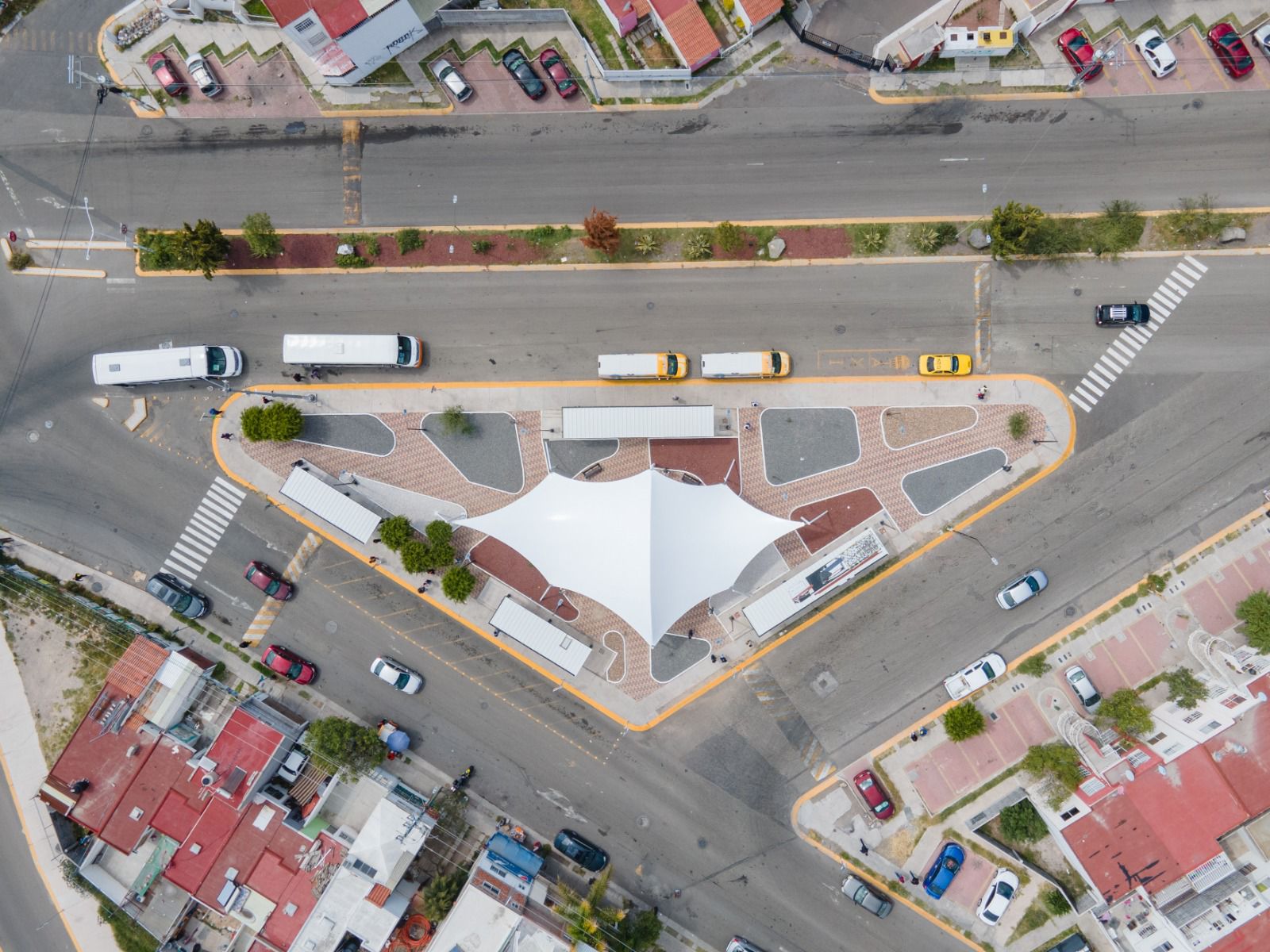 “La principal función de este centro de transbordo es, como su nombre lo dice, llega a uno de los camiones grandes de Qrobus y en ese punto la gente hace el transbordo a camionetas pequeñas que las llevan a diferentes lugares. A nosotros nos tocaba hacer la infraestructura para que este transbordo se pudiera dar bien en un lugar seguro, totalmente iluminado, cómodo para el usuario y lo complementamos con parte de equipamiento de mobiliario urbano”.