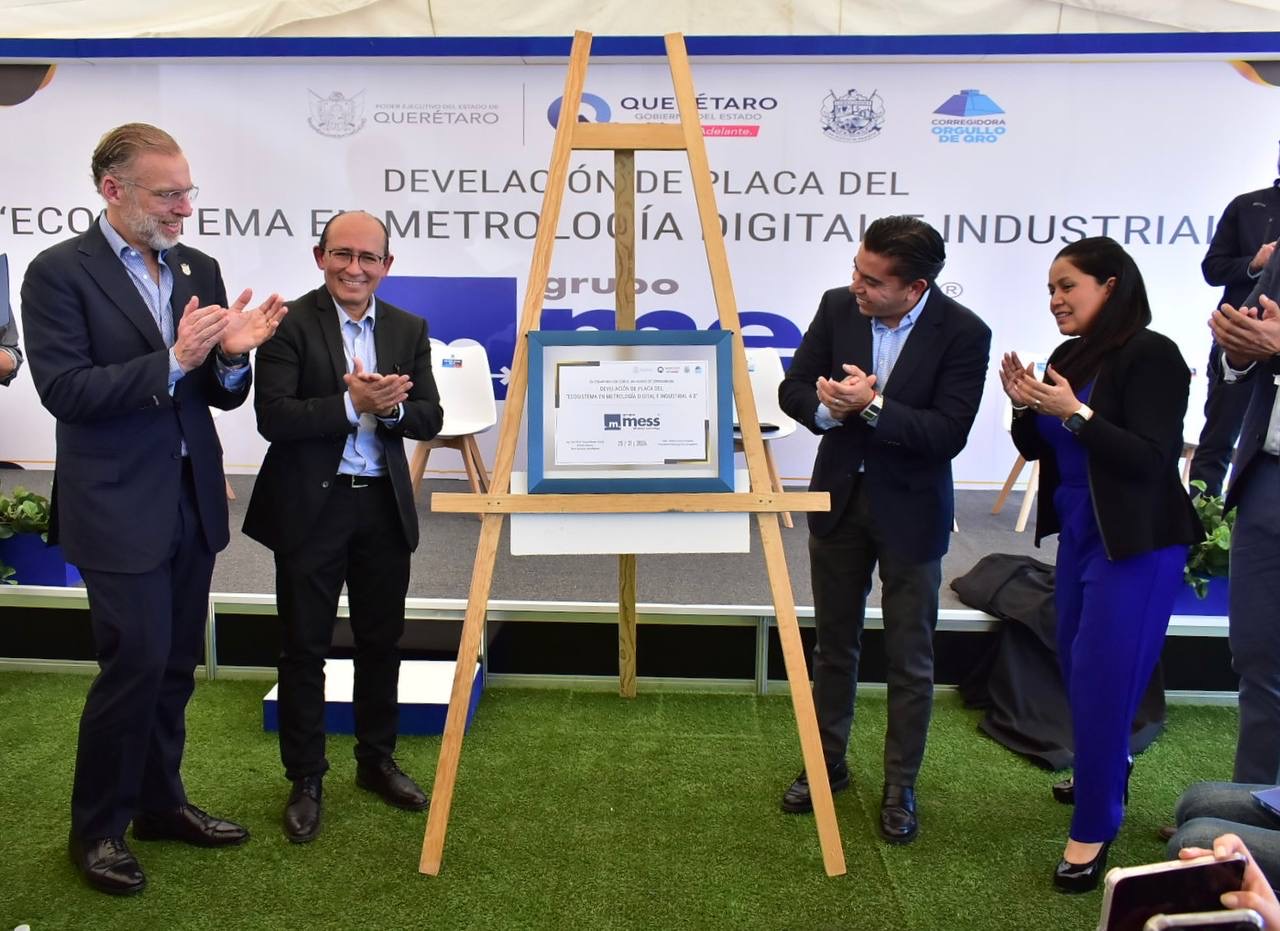 El presidente municipal de Corregidora, Roberto Sosa Pichardo, acudió a la Develación de la placa del “Ecosistema de Metrología Digital 4.0, Grupo MESS”, por parte de su director general, Óscar Morales García, y con la presencia del secretario de Desarrollo Sustentable del Estado de Querétaro, Marco del Prete Tercero, así como de Héctor Mendoza Pesquera, director general del Parque Industrialix, espacio donde se ubicará este corporativo.