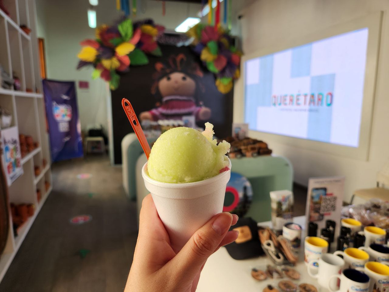 Durante todo mayo, artesanos y productores del municipio de Cadereyta de Montes expondrán en Punto México nieve artesanal, productos de belleza, talabartería, artesanía textil, de barro y cerámica, además de ofrecer información turística de los atractivos y servicios turísticos que ofrecen en este Pueblo Mágico.