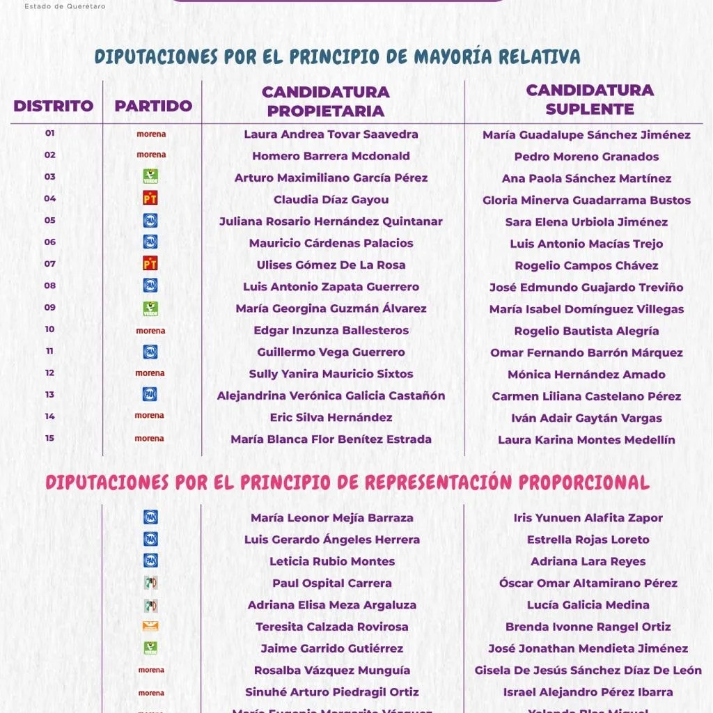 Hace unos instantes el Consejo General de Instituto Electoral del Estado de Querétaro acaba de dar a conocer la conformación de este espacio, la cual quedará de la siguiente manera.