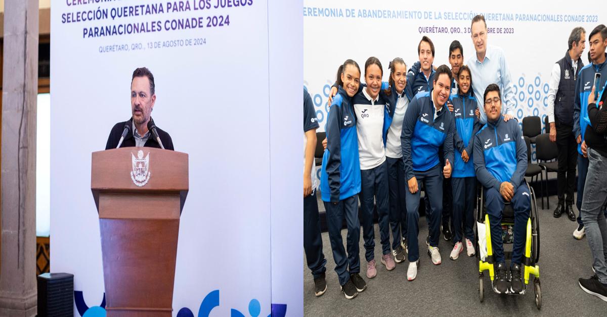 Querétaro, 13 de agosto de 2024. El gobernador del estado de Querétaro, Mauricio Kuri González, reiteró su compromiso y apoyo incondicional a los atletas que representarán al estado en los próximos Juegos Paranacionales CONADE 2024. Este evento deportivo de gran importancia se llevará a cabo a partir del 18 de septiembre en el estado de Oaxaca, donde los deportistas queretanos buscarán destacar en diversas disciplinas.