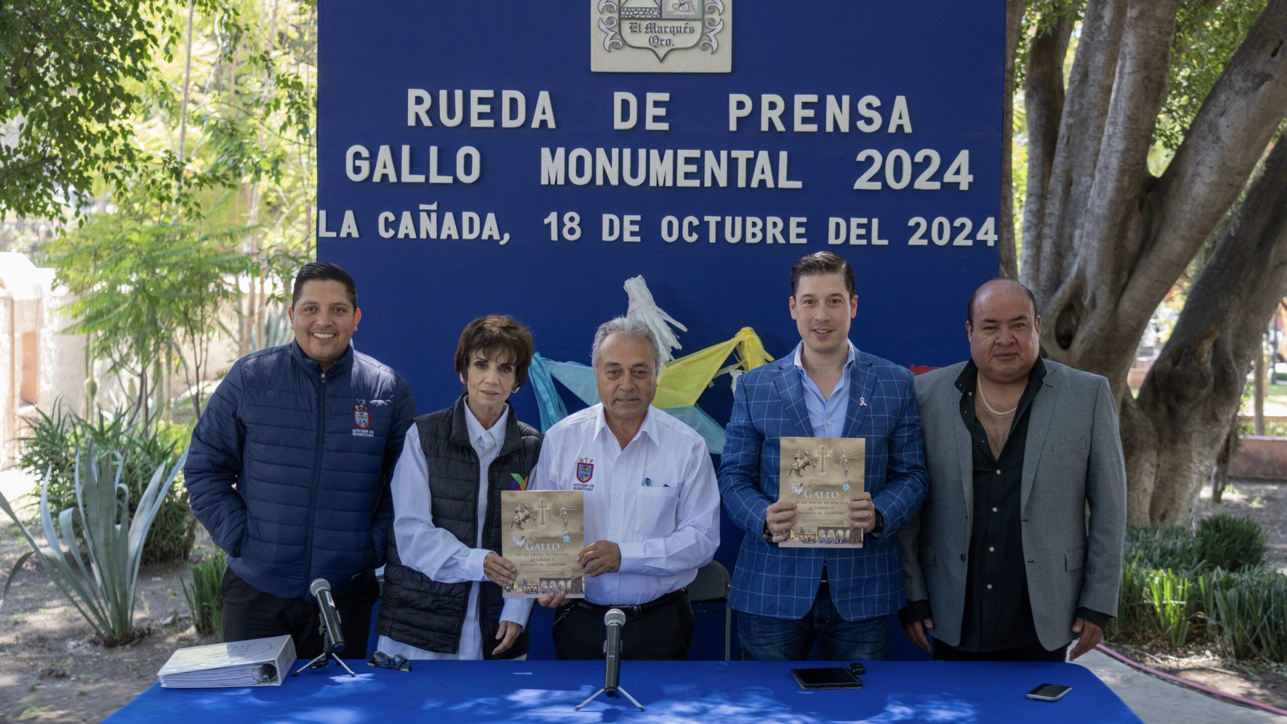 En la rueda de prensa estuvo presente la directora general del Patronato de las Fiestas del Estado de Querétaro, Gloria Eugenia García Alcocer; y el organizador del gallo monumental, José Manuel Morales González.