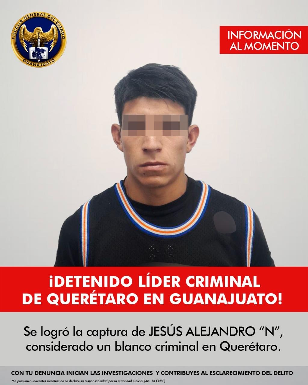 Irapuato, Gto. – La delincuencia sigue sin encontrar refugio. Gracias a un operativo conjunto entre la Fiscalía de Querétaro, la Fiscalía de Guanajuato y la Policía Municipal de Irapuato, se logró la captura de Jesús Alejandro “N”, identificado como un objetivo criminal prioritario en Querétaro.