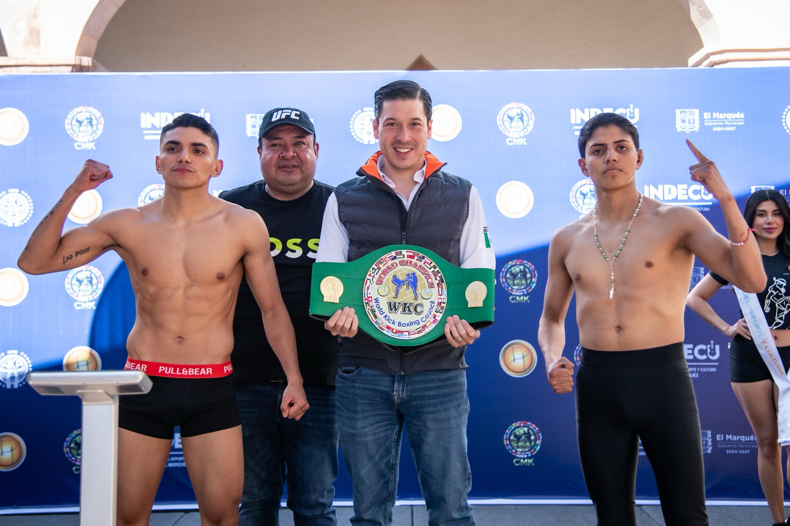 El municipio de El Marqués sigue apostando fuerte por el deporte y el sano esparcimiento. En esta ocasión, el presidente municipal Rodrigo Monsalvo Castelán encabezó la ceremonia de pesaje del Campeonato Mundial y Continental de Muay Thai & Campeonato Nacional K1 – WKC, que se celebrará el 15 de marzo en la Plaza San Pedro, en La Cañada.