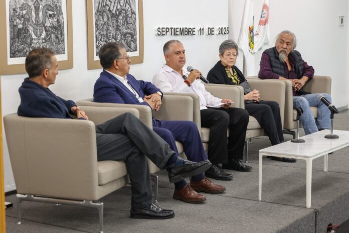 Por su parte, Mario Romero Aguilar, RAMA, compartió que su formación en el Taller de Gráfica Popular marcó su camino artístico, impregnado de la esencia de los movimientos sociales y procesos históricos de México y América Latina. Subrayó que su trabajo es una postura crítica permanente ante problemáticas como las desapariciones forzadas, el saqueo de recursos naturales o la influencia extranjera, y afirmó que “la lucha nunca se acaba, el trabajo se tiene que hacer de manera permanente”.