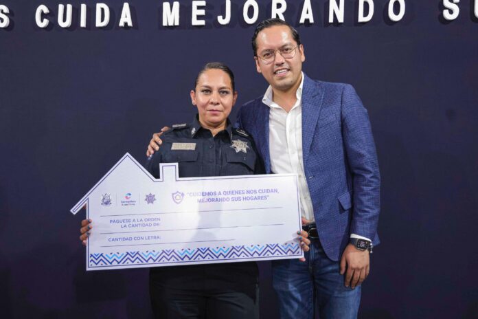 El presidente municipal de Corregidora, Chepe Guerrero, encabezó la entrega de apoyos del programa “Cuidamos a Quienes Nos Cuidan, Mejorando sus Hogares”, mediante el cual 50 policías municipales recibieron estímulos económicos destinados a la adquisición, mejoramiento o construcción de una vivienda digna y segura.