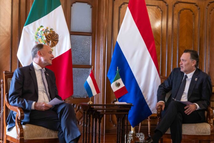 El gobernador de Querétaro, Mauricio Kuri González, sostuvo un encuentro con André Driesse, embajador del Reino de los Países Bajos en México, para abordar diversos temas de interés bilateral, incluyendo el sector agroindustrial, nuevas tecnologías, educación y seguridad. Durante la reunión, Kuri destacó que Querétaro ofrece un entorno favorable para nuevas inversiones e invitó a continuar atrayendo capital extranjero al estado.